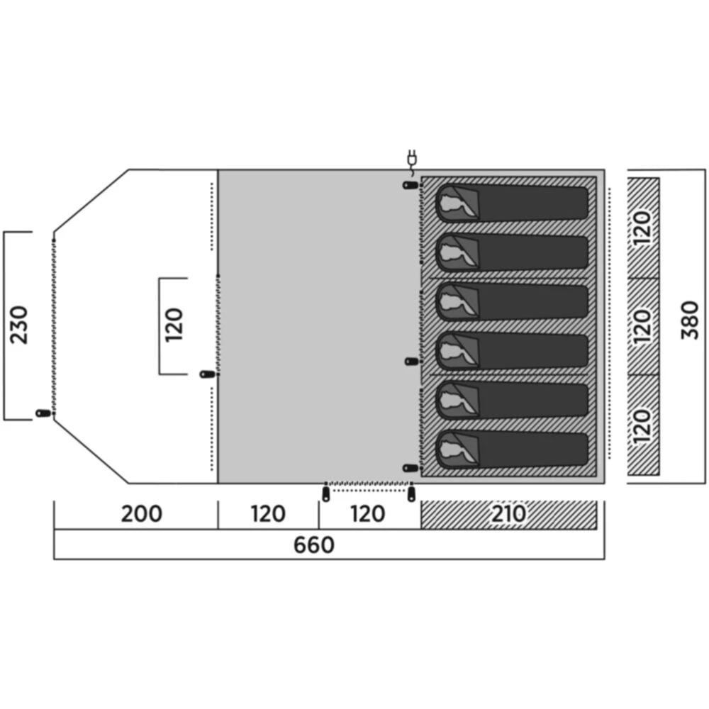 - Three-Zone Design:Â Versatile to UK weather conditions, the three-zone design provides ample, versatile living space with a large enclosed porch and generous living space inside the shelter. It is perfect for growing families needing plenty of room.