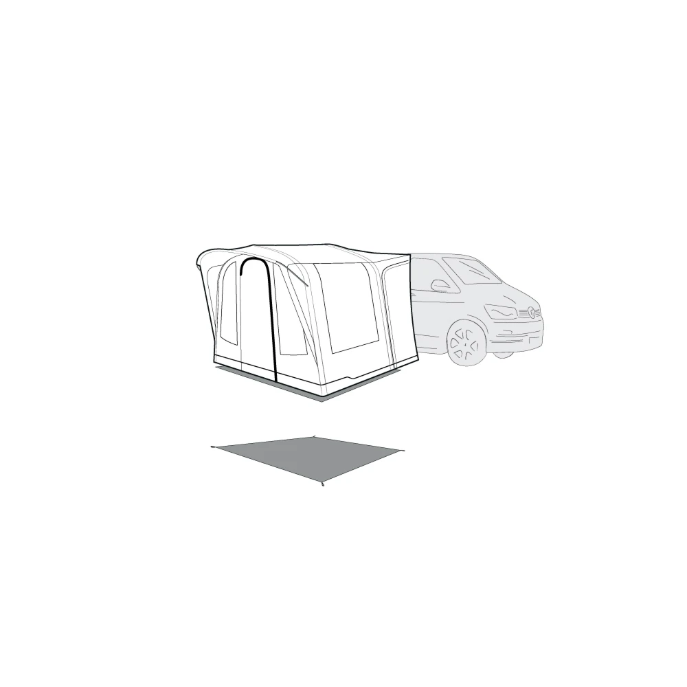 The footprint groundsheet for the Talladega Air awning is a protective layer placed beneath the awning to shield the floor from moisture, dirt, and wear. It is made from durable, waterproof materials and provides an additional barrier against the ground while enhancing comfort. It helps extend the life of your awning and simplifies cleanup after your outdoor adventures.