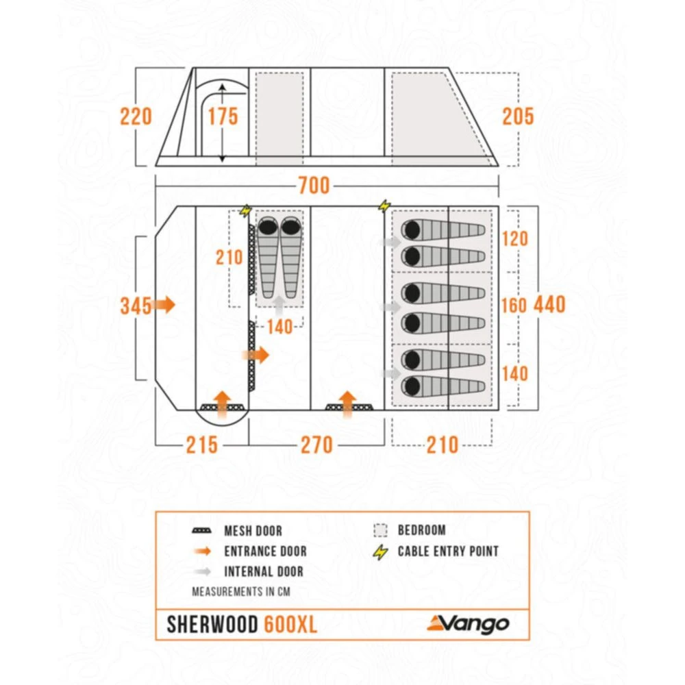 A traditional pole and sleeve tent, the Vango Sherwood 600xl package comprises of the tent and additional groundsheet protector in one package. Crafted with premium embossed polyester materials, the 150 Denier fabric is highly waterproof and retains great lightweight qualities. The Sherwood has a tunnel structure that is spacious, comfortable, and versatile, with a three-zone design that includes a large pre-attached porch space and large internal living spaces, complete with a sealed groundsheet sewn into the flysheet.