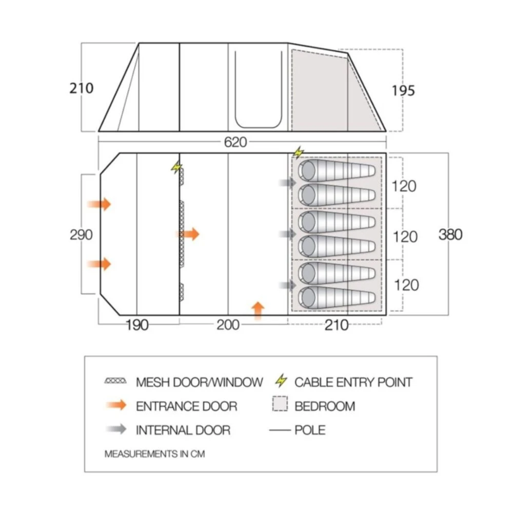 - Set Up Dimensions: L620 x W380 x H210cm